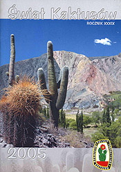 | Rok wydania: 2005Spis treści:Andrzej Typiak (1953 - 2005) in memoria - Grzegorz Matuszewski Słowo wstępne - Grzegorz Matuszewski Z wizytą u dam w Argentynie - Andrzej Mucha Podróż do Ameryki Południowej - Argentyna i Boliwia 2005 - Tomasz Blaczkowski Nowości w świecie kaktusów - Tadeusz Nycz Wyspy Kanaryjskie - Teneryfa i Gomera - Grzegorz Matuszewski Ogród Egzotyczny w Monako - Jardin Exotique de Monaco - Bożena Dubielecka Nasza przygoda z kaktusami - Stanisław Hinz MATUCANA Britton et Rose 1922 cz.1 - Stanisław Hinz URODA ECHINOCEREUSÓW - Echinocereus pentalophus (DC) Lem. - Przemysław Hadasz Solisia pectinata Britton & Rose - Grzegorz Matuszewski Podziemny kaktus ? - Grzegorz Matuszewski Wybryki natury - Grzegorz Matuszewski Nazwy polskie, nazwy łacińskie - Bożena Dubielecka Guide to the Aloes of South Africa B. E. van Wyk & Gideon Smith - Bożena Dubielecka Ferocactus - J. Pilbeam & D. Bowdery 2005 - Bożena Dubielecka Turbinicarpus - Rapicactus - D. Donati - C. Zanovello - Grzegorz Matuszewski SOCOTRA - The Lost Island & Alain Christophe - Grzegorz Matuszewski Żona kaktusiarza - Andrzej Piątek Prezentujemy kolekcje - z wizytą u Michaela Januschkowetza - Wojciech Jamróz Kolekcjonujemy - Kaktusy na kartach magnetycznych - Edmund Gincelis Kolekcjonujemy - Kaktusy w filatelistyce - Edmund Gincelis Wystawa Kaktusów w Warszawie - Bożena Dubielecka |