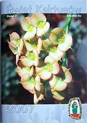 | Rok wydania: 2008 Numer: 1Spis treści:Pro memoria Irena Pomorska - Bożena Dubielecka Ariocarpus agavoides ssp. sanluisensis - Grzegorz Matuszewski Nowości w świecie kaktusów - Tadeusz Nycz Moje rośliny stapeliowate, część I - Stanisław Hinz Jatropa podagrica J.Hook - Przemysław Hadasz Kaktusy na kartach telefonicznych - Edmund Gincelis Rzut oka na czeskie i słowackie kaktusiarstwo w roku 2007 - Jaromir Vavrouch Oroya peruviana - Stanisław Hinz Kaktusy na znaczkach pocztowych - Edmund Gincelis Odznaki z motywem kaktusa - Edmund Gincelis Dewiacje w kaktusach - Andrzej Piątek |