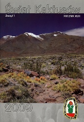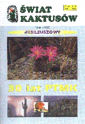 Meksykańskie nowości - Jaromir Sladkowsky(Rep.Czeska) Nowości w świecie kaktusów - Tadeusz Nycz Rodzaj Escobaria - Jerzy Woźniak Kubańskie melokaktusy - Mariusz Milanowski Nowe tendencje w klasyfikacji kaktusów - Tadeusz Nycz Turbinicarpus swobodae - Grzegorz Matuszewski Kaktusy mrozoodporne - jak je uprawiać - Antoni Hinz Karaibska wyspa Aruba - Zofia Kabiesz Uroda echinocereusów - Echinocereus rigidissimus v. rubispinus - Przemysław Hadasz Kącik sukulentów - "Adromischus" - Stanisław Hinz |