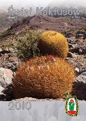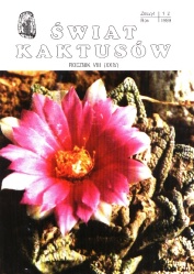 Powspominajmy - Zofia Kabiesz Rodzaj Glandulicactus - Jerzy Woźniak Karłowate mamilaria wielkokwiatowe w uprawie - Kazimierz Łakomski Nowości w świecie kaktusów - Tadeusz Nycz Uroda echinocereusów - Echinocereus davisii - Jerzy Woźniak Selenicereus testudo - Stanisław Hinz Przemysław Hadasz - Rodzaj Lithops Kącik sukulentów - "Aloinopsis" - Stanisław Hinz Wyspy Kanaryjskie - Lanzarote, Park kaktusów - Zofia Kabiesz Moja przygoda z kaktusami - Marek Czupryński |