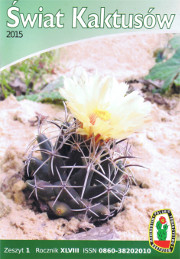 Ochrona roślin a rzeczywistość - Grzegorz F. Matuszewski Zobaczyć Aztekium valdezii i... - Grzegorz F. Matuszewski Poznajmy strombokaktusy - Grzegorz F. Matuszewski PERU: Costa, Lomas, El Niño - Eugeniusz Skurowski Haageocereus tenuis - dzielny kaktus nadmorskiej pustyni - Eugeniusz Skurowski Elementarne podstawy genetyki - Mieczysław Pytlak Próby uprawy Aztekium ritteri - Kazimierz Łakomski Kilka słów o przędziorku - Andrzej Ładniak Kaktusy w Norwegii - Andrzej Sekuła Prelekcje o parodiach - Eugeniusz Skurowski Przegląd polskojęzycznych książek o kaktusach cz.2 - Piotr Dzieduszyński W poszukiwaniu inspiracji wycieczki do Bydgoszczy 2 maja 2014 r. i Brna 2-3 maja 2015 r. - Jolanta Ambroziak "Kaktusowe otwarcie sezonu" na Kaszubach - Eugeniusz Skurowski Spotkanie "KAKTUSY V POBESKYDÍ 2015" - Eugeniusz Skurowski Wycieczka do Czech 4-7 czerwca 2015 r. - Tomasz Trojańczyk Wiosenne Spotkanie Miłośników Kaktusów Ustroń - Jaszowiec 2015 - Andrzej Wandzik Wizyta czeskich kaktusiarzy z Ołomuńca w Polsce - Andrzej Wandzik Chrudim 2015 "Zamknięcie sezonu" - Andrzej Wandzik PRO MEMORIA Rudolf Grym (1946-2015) - Andrzej Wandzik PRO MEMORIA Honorata Ciapówna (1925 - 2014) - Wojciech Preidl Odznaka PTMK - Edmund Gincelis |