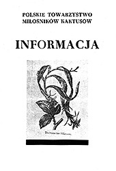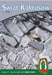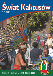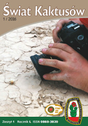 Z historii kaktusiarstwa w Polsce - część 2 - Bożena Dubielecka i Andrzej K. Wróblewski „Łapa Murzyna” i „Stopa Słonia” czyli o początkach Łódzkiego Kaktus Klubu - Piotr Dzieduszyński Bydgoski Klub Miłośników Kaktusów 1961 - 2016 - Jerzy Balicki XVII KAKTUSIADA 50 - lat Polskiego Towarzystwa Miłośników Kaktusów - Andrzej Wandzik Okolice Cuatro Ciénegas, Coahuila Mexico - Grzegorz F. Matuszewski Mammillaria scheinvariana ERRATA - Grzegorz F. Matuszewski Kaktusy Kanadyjskie - Andrzej Ładniak Growing Winter Hardy Cacti in Cold/West Climate Conditions (Recenzja) - Andrzej Ładniak Wyspa wiatrów Fuerteventura - Grzegorz F. Matuszewski Przegląd polskojęzycznych książek o kaktusach – część 3 - Piotr Dzieduszyński BKMK - notatka z wycieczki do Berlina 14.05.2015 - Jerzy Balicki „Kłujące Piękności” Wystawa kaktusów w gliwickiej „Palmiarni” 2015 - Wojciech Preidl „KWITNĄCE KAKTUSY” Wystawa kaktusów w gliwickiej „Palmiarni” 2016 - Eugeniusz Skurowski Odznaki oddziałów PTMK - Edmund Gincelis |