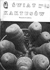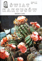| Rok wydania: 1985numer zaległy wydany w 2000 r.Spis treści:Nowości w świecie kaktusów - Tadeusz Nycz Parodie Friedricha Ritera - Andrzej Mucha, Henryk Sobka Nowe opisy w rodzaju Gymnocalycium - Grzegorz Matuszewski Na stanowiskach Astrophytum ornatum - Przemysław Hadasz Mammillaria rodzaj, gatunki, synonimy - Roman Kusiak Mammillaria wg. Schumanna - Roman Kusiak Echinocactus grusonii - Stanisław Hinz Mammillaria carmenae - Przemysław Hadasz Mammillaria duwei - Grzegorz Matuszewski Notocactus ottonis var.vencluianus - Przemysław Hadasz x Ferobergia "Gil Tegelberg" - Grzegorz Matuszewski Lomatophyllum - Stanisław Hinz Espeletia - Stanisław Hinz Kiedy kwitnie Mammillaria - Roman Kusiak Wybryk natury - Grzegorz Matuszewski Huntington Desert Garden - V. Habermann Z kaktusiarskiej praktyki - Wiktor Broda Skróty nazwisk i ich tłumaczenie - Roman Kusiak Ogrod Botaniczny - Praga Kaktusowe pyszności - dla smakoszy cz.I - Zofia Kabiesz Z życia PTMK |