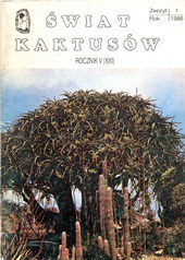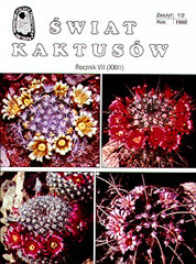 | Rok wydania: 1988numer zaległy wydany w 2001 r.Spis treści:Nowości w świecie kaktusów - Tadeusz Nycz Nowe opisy rodzaju Mammillaria - Grzegorz Matuszewski Thelocactus bicolor var. commodus - Grzegorz Matuszewski Hechtia - Stanisław Hinz Mammillaria zacatecasensis - Marek Lach Idria - Stanisław Hinz Yucca - Stanisław Hinz Kącik sukulentów - Rodzaj Tylecodon - Grzegorz Matuszewski Kaktusowe pyszności - dla smakoszy cz. II - Zofia Kabiesz Kaktusowe anomalie - Mirosława de Michelis Co piszą inni - Maciej Sekula, Andrzej Typiak Pro Memoria Kaktusowe ciekawostki - Roman Kusiak Kaktusy w filiatelistyce - Andrzej Typiak Z życia PTMK |